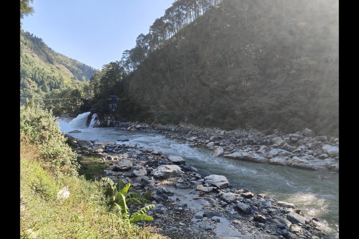 अब हम चल पड़े, अपने आधार शिविर रैथल की ओर, हमारे साथ-साथ मार्ग के ख़ूबसूरत दृश्य भी चल पड़े। उत्तरकाशी से लगभग आठ किलोमीटर पूर्व में मनेरी में स्थित भगीरथी नदी पर एक कंक्रीट ग्रेविटी बाँध है, जो हमारे आधार शिविर वाले रास्ते पर ही है। पर्यटकों, ट्रैकरों की सुविधा के लिए इसे सेल्फ़ी पाइंट बना दिया है, वैसे इस परियोजना का निर्माण 1979 में हुआ था, लेकिन यह अक्तुबर 1984 में पूरा होकर शुरू हुआ। लगभग एक वर्ग मील क्षेत्रफल में फैले इस बाँध की क्षमता 90 मेगावाट की है। यहीं बैठकर हमने अपने गाइड की प्रतीक्षा में चाय पी, जो कुछ समय बाद ही आ गया। अब हमारे साथ टैक्सी में गाइड रणवीर भी है, जो राजेश पंवार (दा नैटिव हिमालय) का भाई है। बाँध के आस-पास के मनभावन दृश्य, ठंडी हवा के झोंके, भगीरथी की कल-कल करती धारा के साथ हमारी टैक्सी आगे बढ़ने लगी। खेतों में आलू की हार्वेस्टिंग चल रही है, जैसे-जैसे सूरज चढ़ रहा है, सड़क पर गाय-बकरियों की भीड़ भी बढ़ रही है। सड़क के किनारे आलू भरी बोरियों के चट्टे लगे हैं। सैंज गाँव आया . . . फिर लाटा . . . फिर मल्ला गाँव . . . फिर भटवाड़ी और क्यार्क आए . . . हम एक बजे रैथल पहुँच गए। यहाँ घर-घर में होमस्टे का बोर्ड लगा है, जिसमें हम रुकेंगे वह होमस्टे गढ़़वाल मंडल विकास निगम के गेस्ट हाउस से सटा है। इसमें रहने की अच्छी व्यवस्था है। हमने सामान जमा दिया, फिर रणबीर की आवाज़ आई, लंच के लिए आ जाइये . . . ख़ुशी की लहर भूखे बदनों में फैल गई। पहाड़ी करेला, दाल-चावल और रोटी अत्यंत स्वादिष्ट लगे।