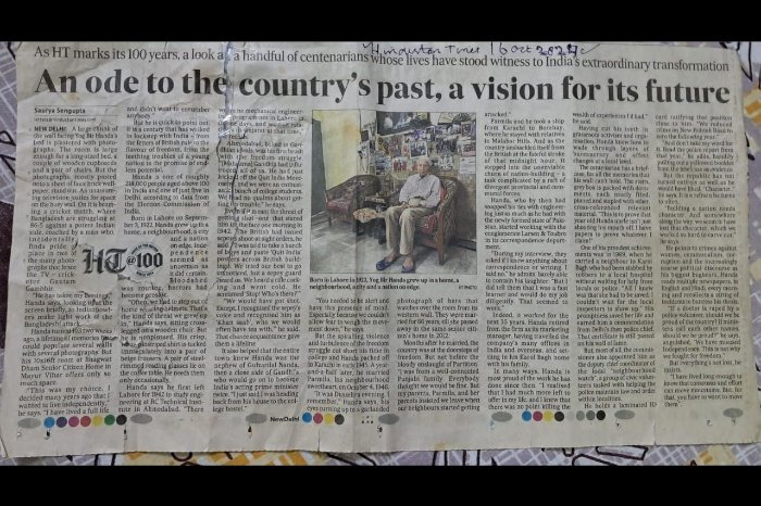 आदरणीय योगवीर हांडा अंकल एक सौ तीन वर्षों का वह सजीव इतिहास, जिनसे हुई मेरी भेंट ने मेरे जीवन को भीतर तक समृद्ध कर दिया। कुछ व्यक्तित्व ऐसे होते हैं, जिनसे मिलना मात्र एक परिचय नहीं होता, बल्कि समय के साथ संवाद करने जैसा अनुभव होता है। योगवीर हांडा अंकल से मिलना भी मेरे लिए ऐसा ही एक दुर्लभ सौभाग्य रहा।