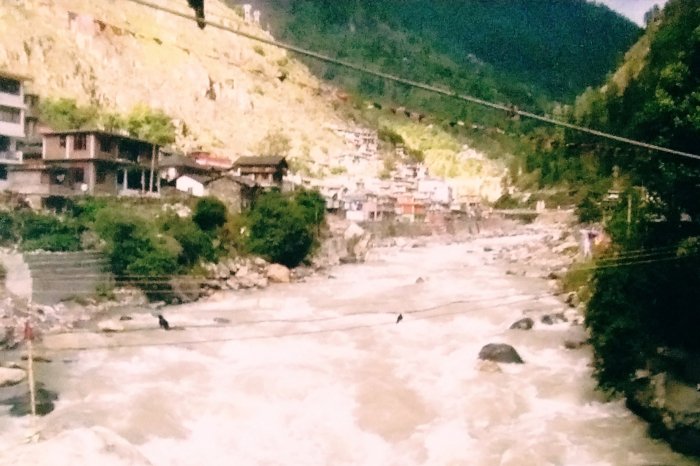 मलाना संस्कृति से संपृक्त कसोल घाटी से चार किलोमीटर दूर मणिकर्ण पहुँचते ही धीमी, शांत गति से बहती पार्वती उफनती, लरजती, गरजती दिखलाई पड़ गई। हम एक पुल के पास खड़े होकर नीचे बहती विशाल पार्वती नदी को देखते रह गए . . . एकदम स्वच्छ, नीलाभ वारि . . . उस पर वारि-वारि जाए जैसे मन।